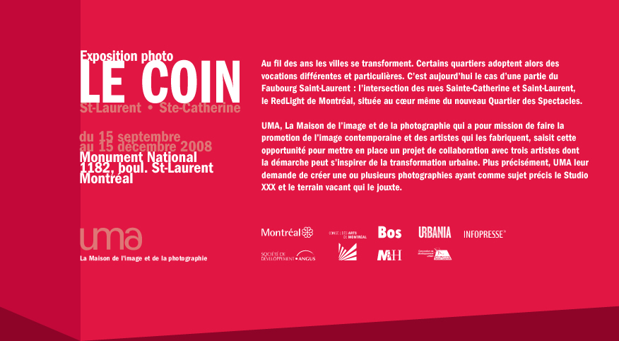 Fasciné par la douceur des photographies anciennes il retrouve cette esthétique dans l’utilisation de la technique appelée sténopé qui remplace l’objectif de la caméra par un trou d’épingle. Comme il s’intéresse tout particulièrement au paysage urbain et à sa représentation photographique, pour lui, le quartier du RedLight devient un prétexte à une recherche formelle. D’ailleurs, s’il est ici question de mémoire, la technique ancienne utilisée par Guy glorieux et qu’il remet ainsi en valeur permet de capter les déplacements des gens, des automobiles, bref, tous changements sur un période de temps de plusieurs heures. La photographie devient évanescente tout en étant paradoxalement le témoin de nombreuses transformations. Le résultat photographique s’inscrit donc dans le processus même de mutation du quartier. Il le symbolise d’ailleurs dans le rendu du temps que l’on saisit très bien à travers l’empreinte lumineuse. Guy Glorieux réussit ainsi à nous faire remettre en question notre propre regard sur la ville.